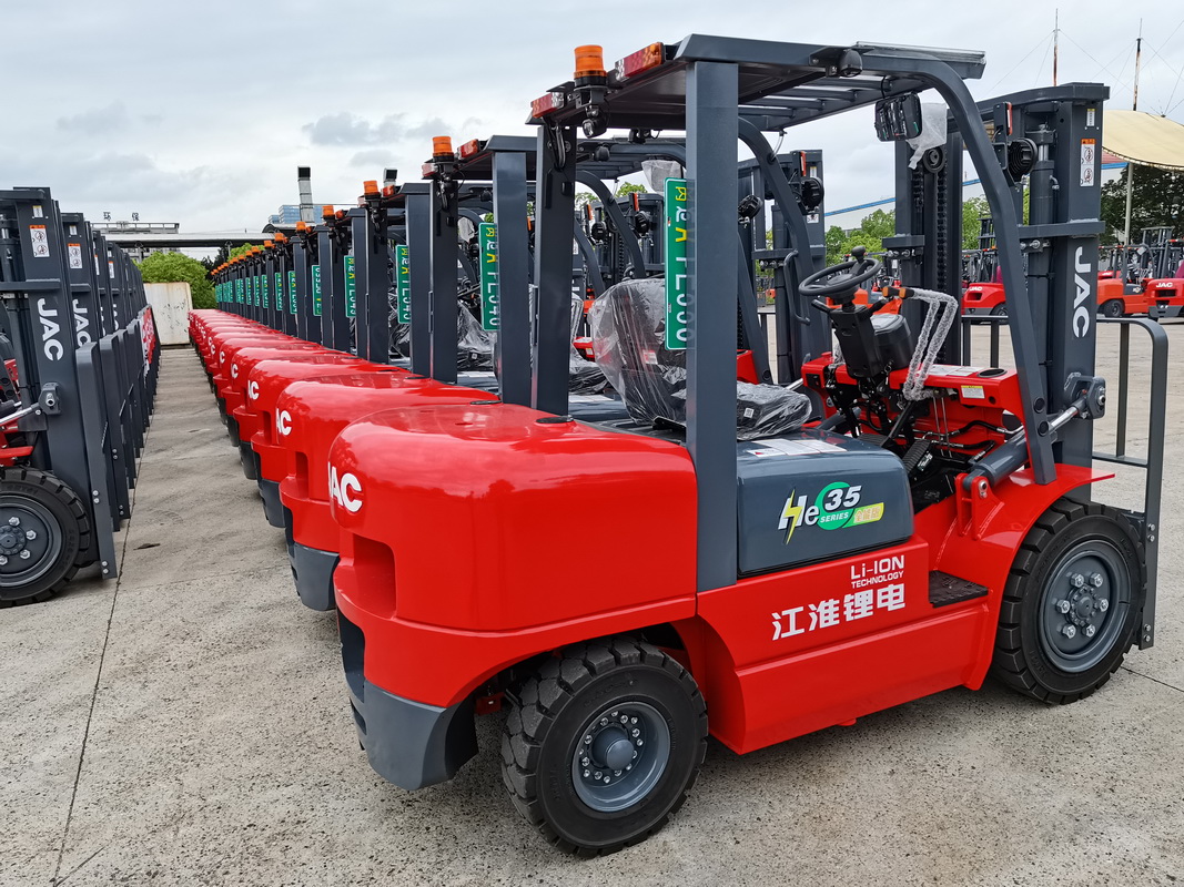 近日,36臺(tái)江淮新能源叉車(chē)和搭載國(guó)四排放車(chē)型批量交付北方某新能源企業(yè),此次批量交付是該企業(yè)年內(nèi)第三次續(xù)購(gòu)江淮品牌叉車(chē)。
