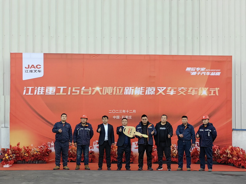 江淮重工15臺大噸位新能源叉車交付鋼鐵行業(yè)